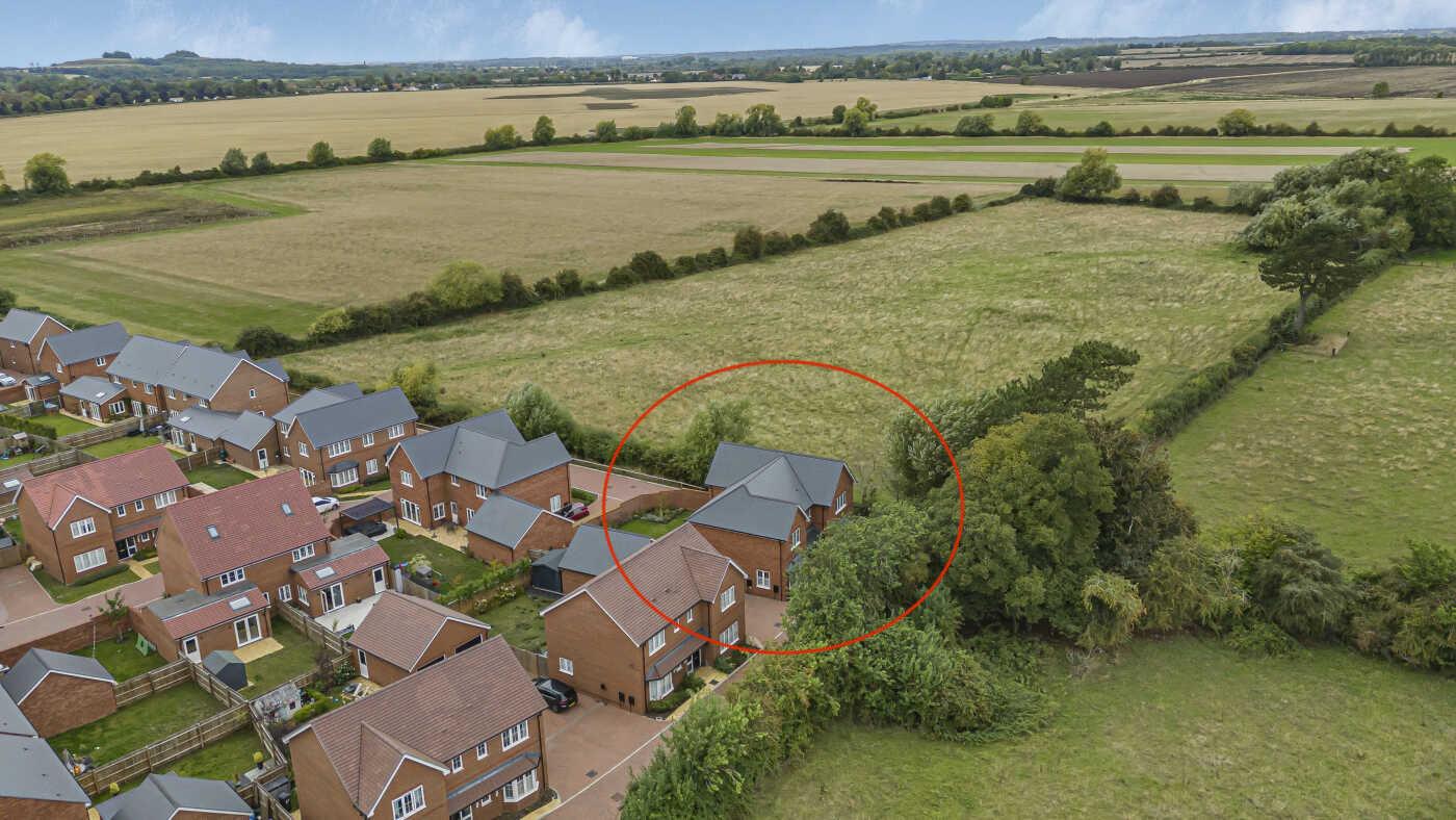 An elegant 5-bedroom detached home, built in 2022 and extensively upgraded by the current owners. Situated at the far end of a no-through road and with views over neighbouring farmland. Generous proportions, open-plan kitchen-dining, separate utility boot room. Sitting room, family room, study. 4 double bedrooms, 1 single in use as dressing room. 3 bathrooms. Enclosed rear garden. Double garage with off-road parking for 2 cars.