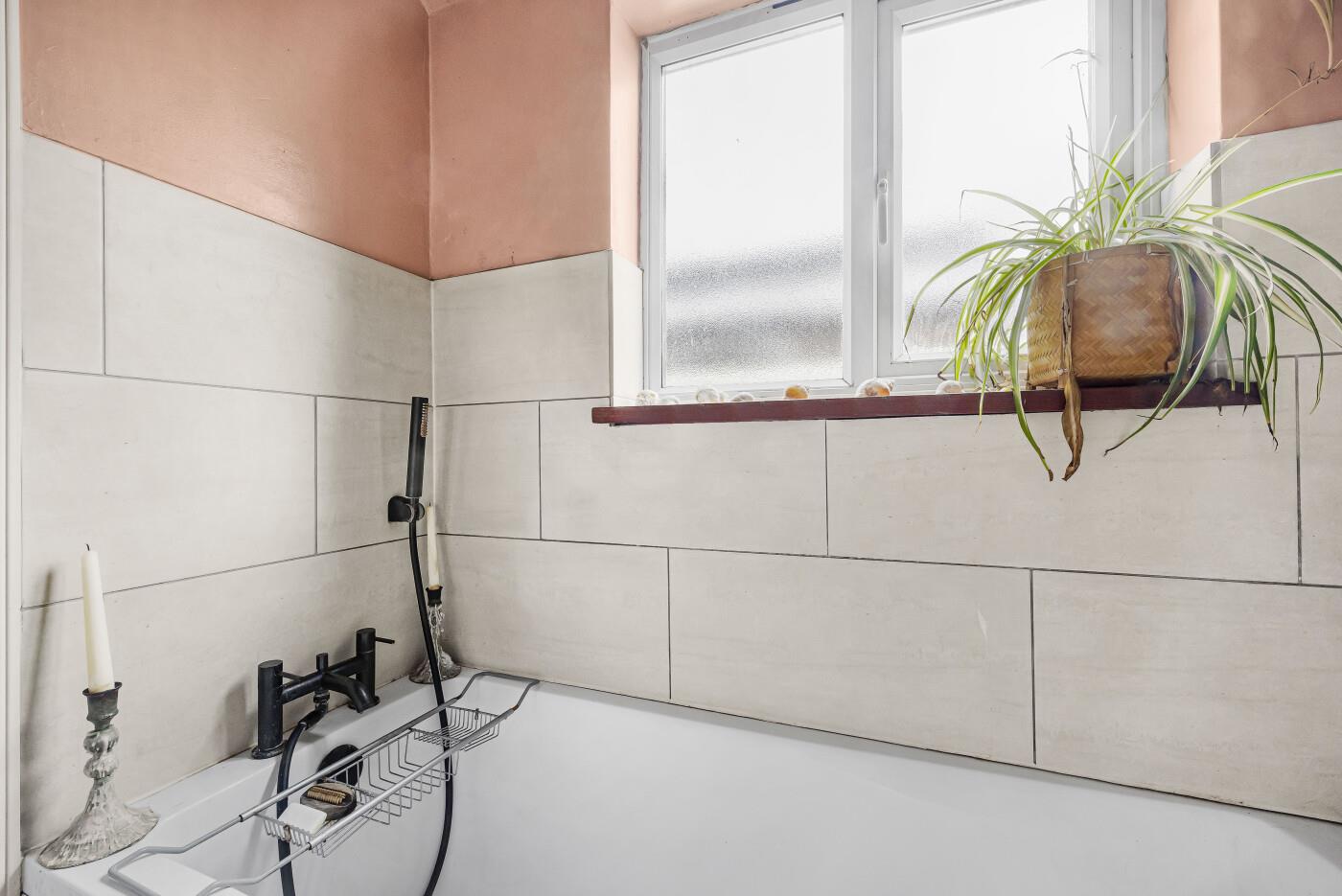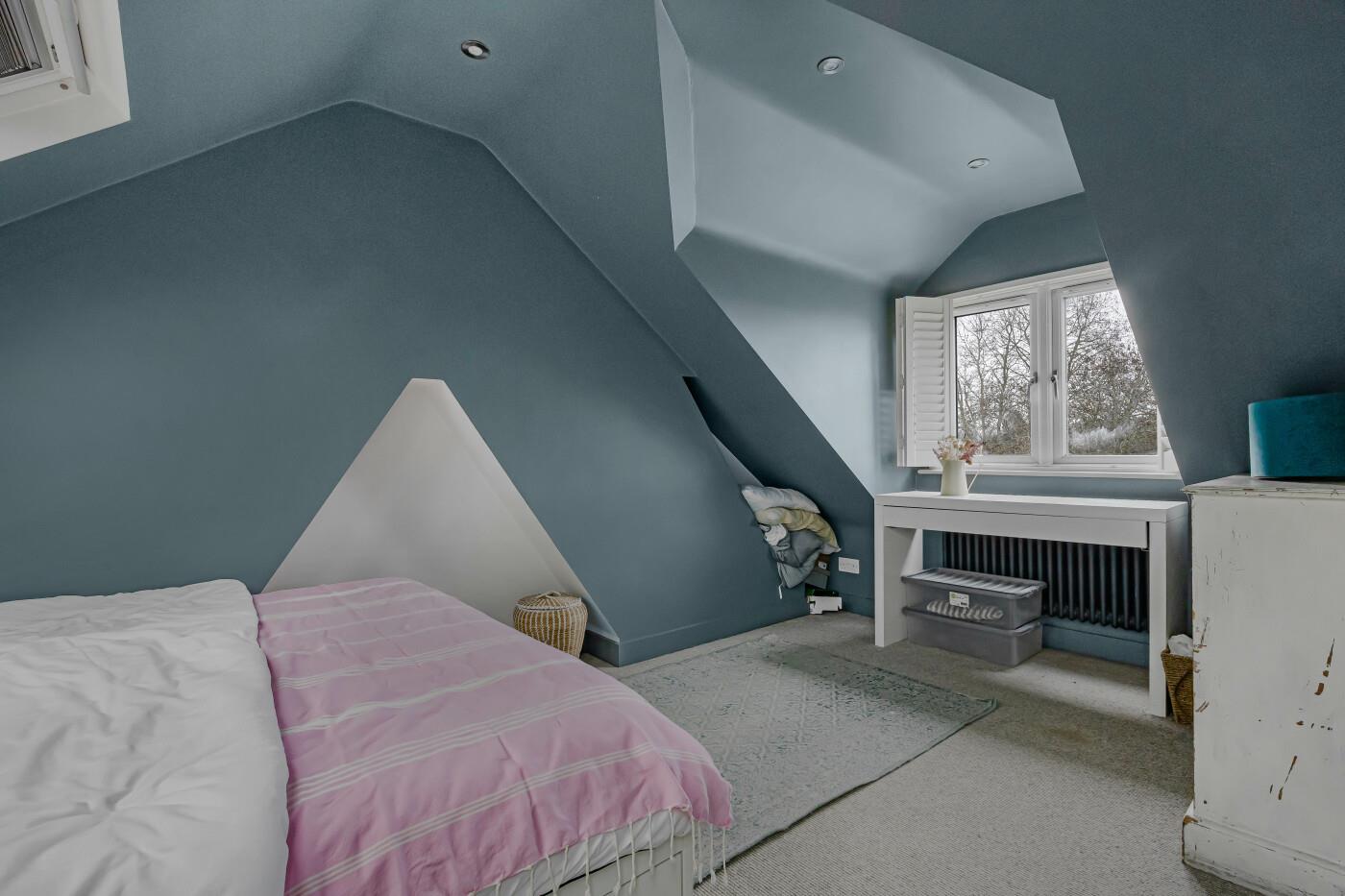 Bedroom 1 is an attractive double carpeted bedroom, with a full-height dormer window to the rear and fitted plantation shutters. 2 Velux windows have been installed to the front of the room with integrated black-out blinds and Velux exterior awning blinds for heat reduction.