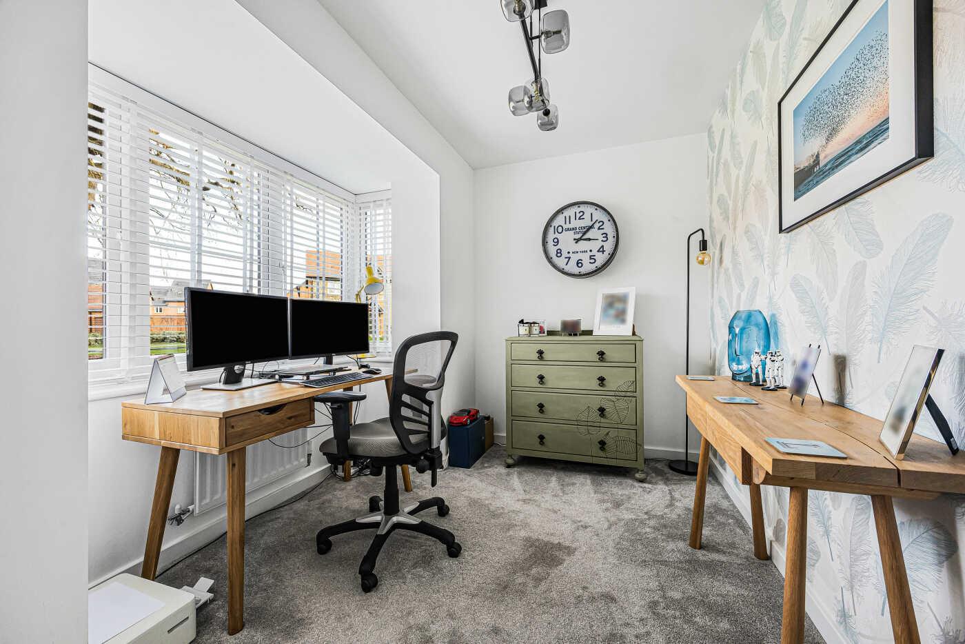 The study offers an ideal 'work from home' office space or a snug/playroom with a front aspect overlooking the green.