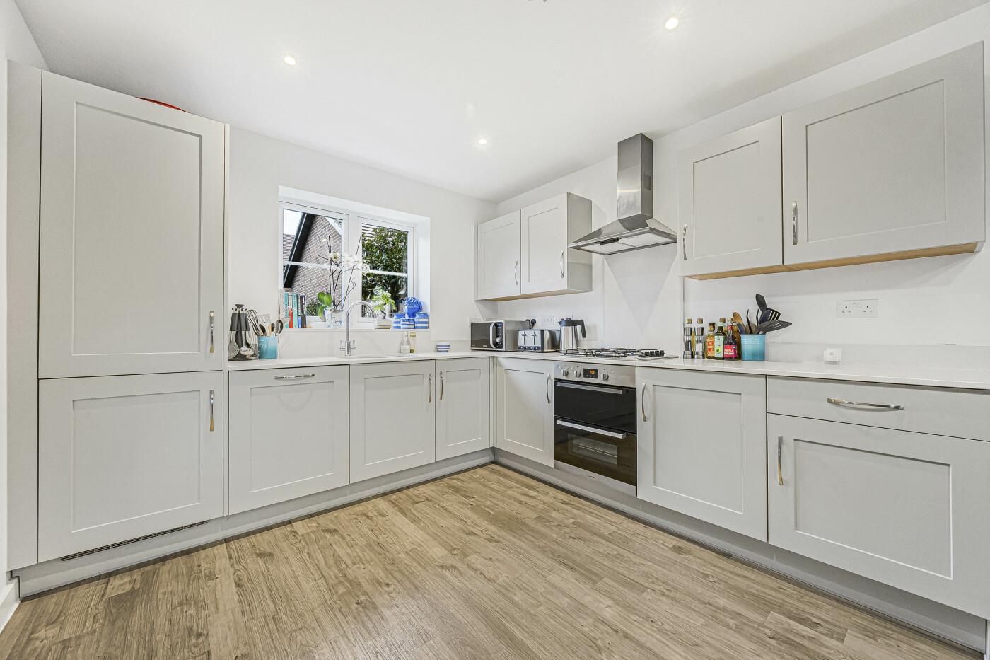 A beautifully presented 4-bedroom detached home, situated in a tucked-away, traffic free location overlooking a green, on the edge of Henley-on-Thames. Offering approximately 1,265 sq ft of living space over ground and first floors, including an open-plan kitchen/dining room, a utility room, a sitting room, a study, a cloakroom, 4 bedrooms and 2 bathrooms. A south-west facing garden with patio and Mediterranean style planting. Private driveway and detached garage. A perfect family home with excellent access to schools, shops, and transport links.