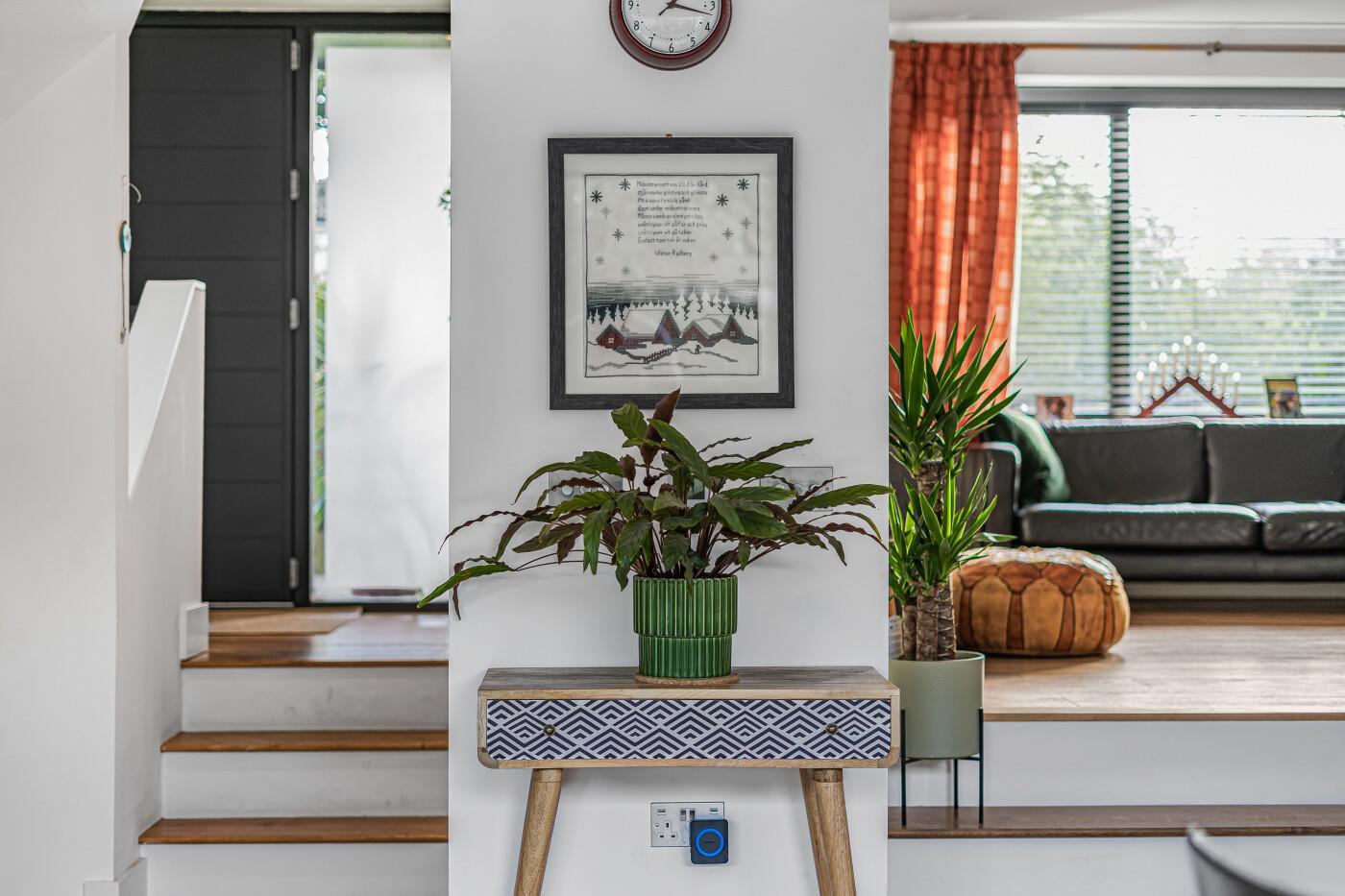The property was designed by local architect Simon Mack and features distinct Larch timber cladding, painted bricks and rendered facades and a grey slate roof. Inside, the house features electric air-source heat pump underfloor heating throughout.