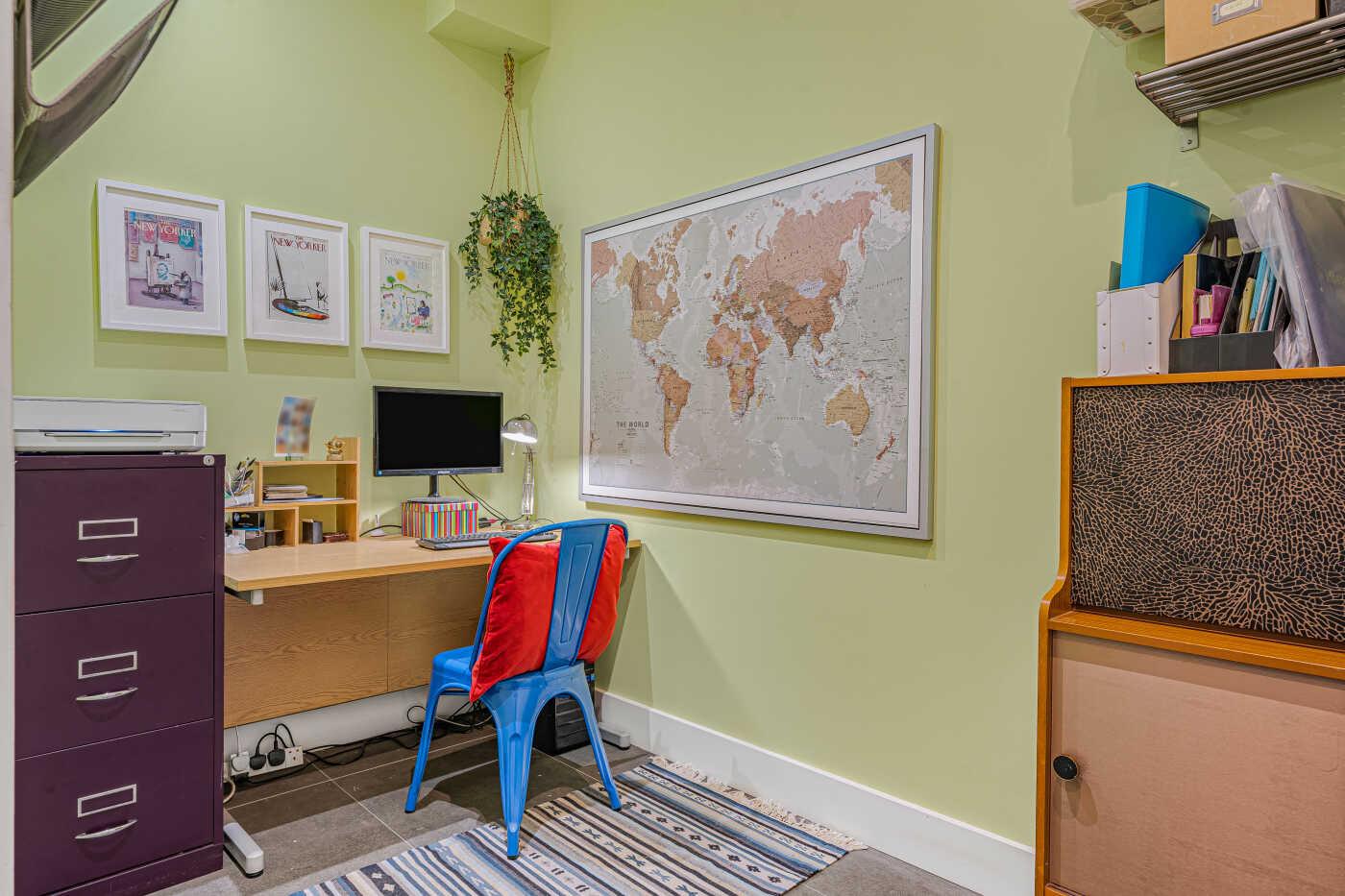 There is a dedicated work-from-home space at the foot of the stairs with a ceramic tiled floor.