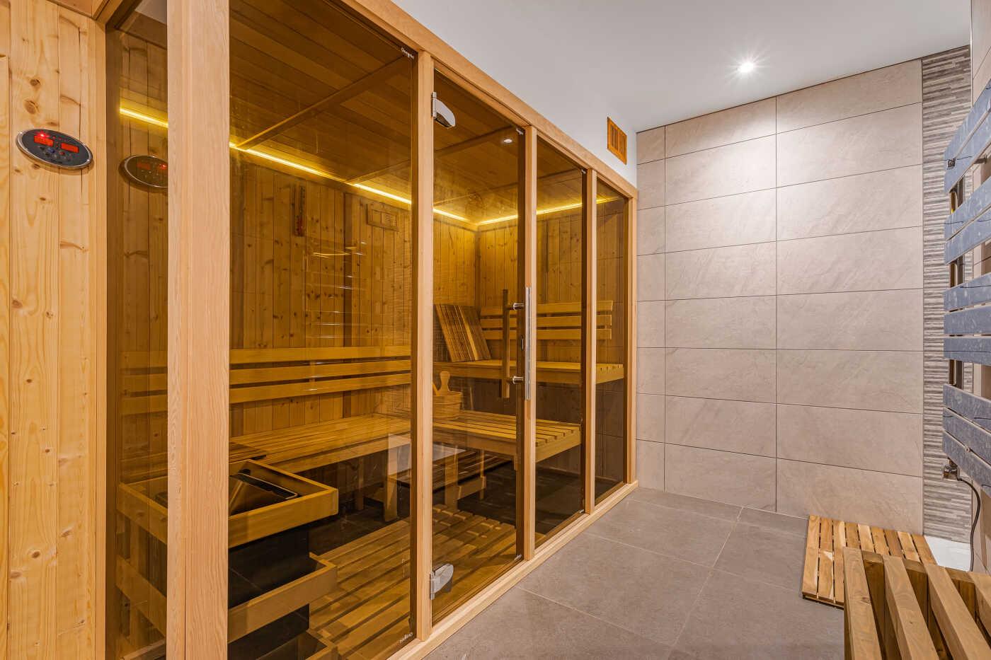 There is a purpose built sauna with pine panelling, fitted bench seating and tinted glass. The adjoining fully tiled walk-in wet room and a rainfall shower head and a heated towel rail.