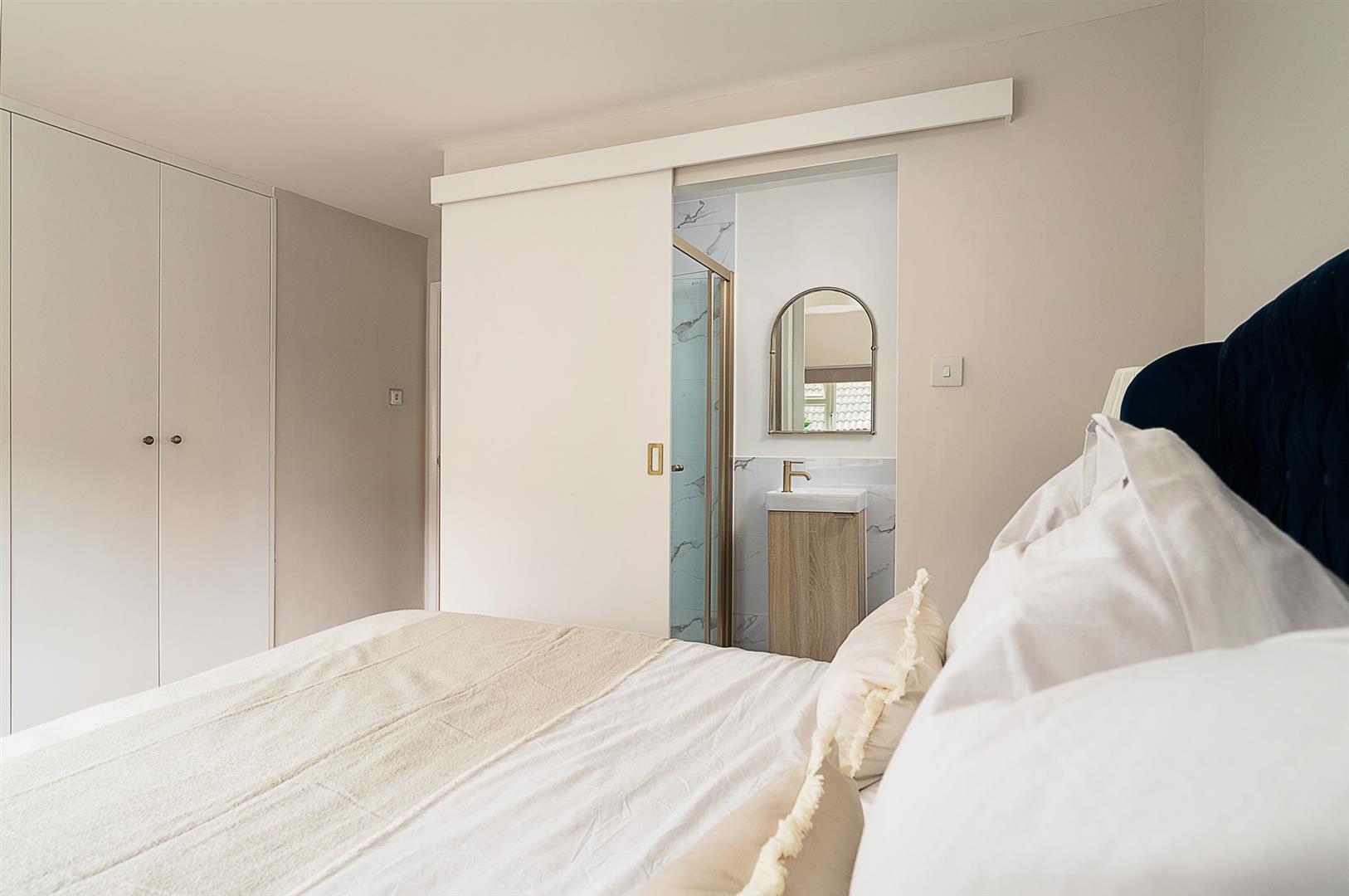 Bedroom 1 is a large double with extensive in-built wardrobe and cupboard space, engineered oak flooring and a large picture window to the rear.