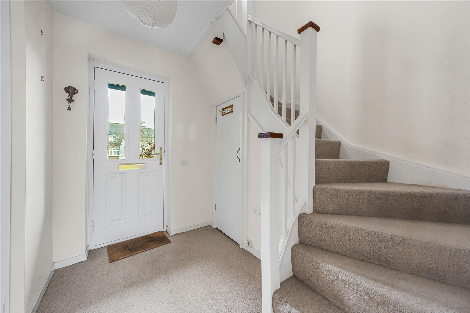 The entrance hall has stairs to the first floor with useful storage under.