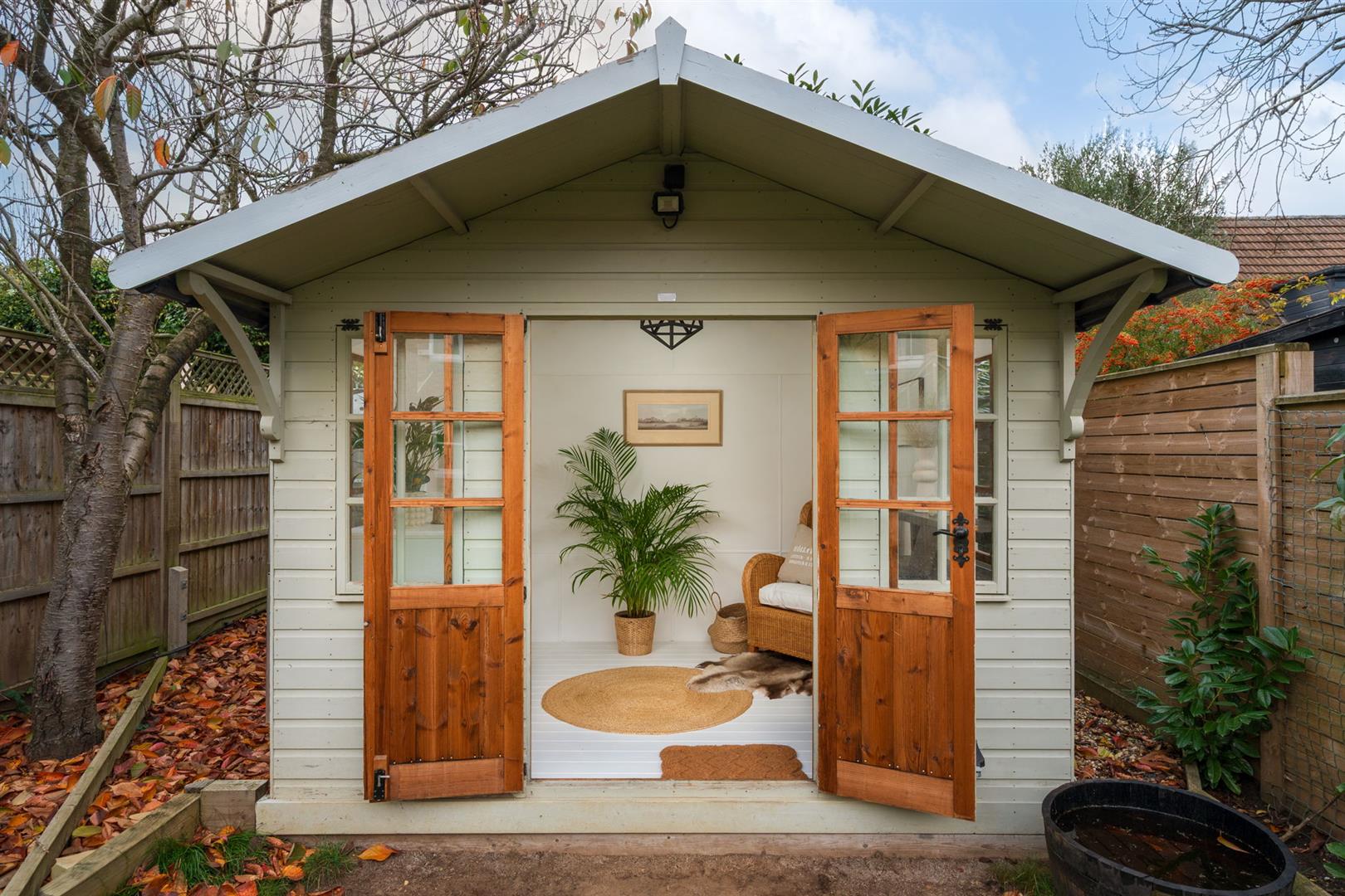 The rear garden has a patio terrace leading to the lawn with mature borders, with a pedestrian gate to the side access. The original coal shed is integrated into the house, and in use as a storage shed. A further brick outhouse contains the laundry facilities. At the end of the garden is a detached summer house is fitted with lights, power and broadband.