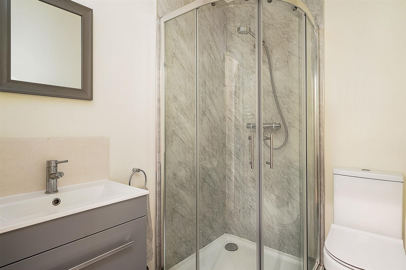 The utility room is accessed from the central reception room, with wood laminate flooring, fitted wall and base units, space for a washing machine and a tumble dryer, a stainless steel sink set into quartz composite worktops, and a window to the front of the property. A corridor leads to the guest suite, with a shower room with a skylight, heated towel rail, a tiled walk-in shower, wash hand basin set into a cabinet. Further down the corridor, there is a composite door out to the garden. And a double bedroom (4) with carpets, LED lighting and a window overlooking the garden.