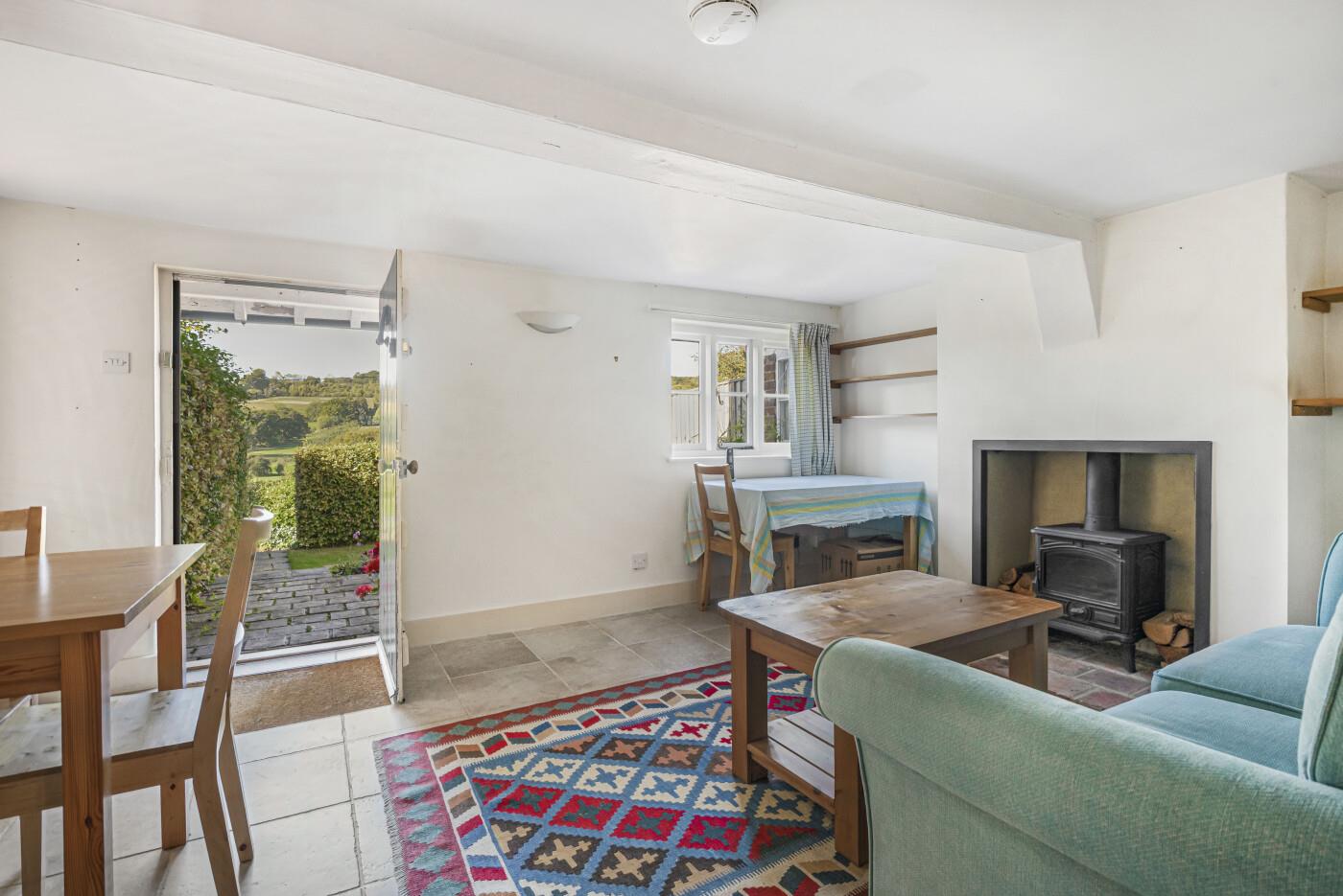 To the front of the cottage the is a paved terrace, perfect for Al Fresco dining, whilst enjoying the far reaching views. A shrub border and steps lead down to an area of lawn with a hedge providing privacy. Further steps lead down to the gravelled car parking area, providing off-road parking for several cars.